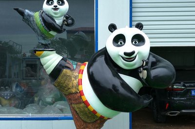 腳上一只小熊貓的功夫熊貓雕塑