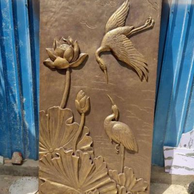 玻璃鋼仿銅仙鶴荷花浮雕畫