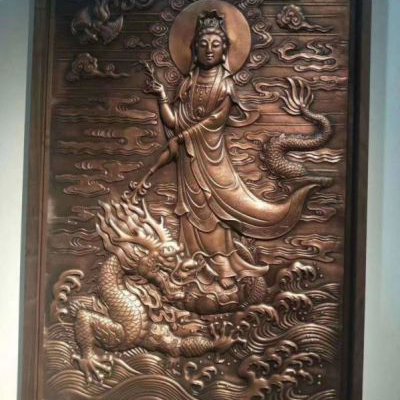 乘龍觀音玻璃鋼仿銅浮雕壁畫