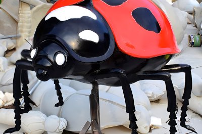 七星瓢蟲雕塑以可愛的瓢蟲為原型,玻璃鋼材質(zhì)輕巧耐用,色彩鮮艷,適合作為兒童游樂區(qū)或生態(tài)教育的裝飾。