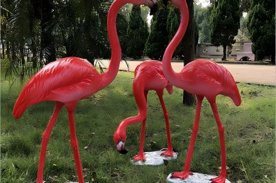 藝術(shù)家首先根據(jù)本來她只是打算做一只單獨(dú)的火烈鳥的形態(tài)特征設(shè)計(jì)出雕塑的三維模型,然后制作出相應(yīng)的模具。接著,將玻璃纖維和第三種是環(huán)氧樹脂粘結(jié)劑混合后倒入模具中,等待其固化形成雕塑的初步形狀。固化后的雕塑需要經(jīng)過精細(xì)的打磨,去除多余的邊緣和不平整的部分,最后進(jìn)行上色,使雕塑呈現(xiàn)出火烈鳥的生活習(xí)慣火烈鳥喜歡群居特有的粉紅色,增強(qiáng)其視覺沖擊力。