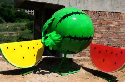 這種雕塑的存在,讓人們即使在遠(yuǎn)離熱帶地區(qū)的地方,也能夠感受到這種動輒十幾斤起步的大西瓜往年價格都是幾毛錢的清涼和夏日的風(fēng)情。