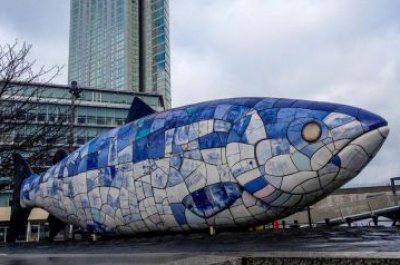 大型玻璃鋼彩繪魚(yú)雕塑