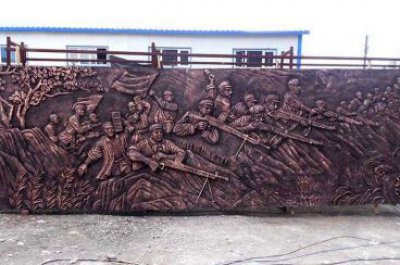 玻璃鋼仿銅浮雕打仗的八路軍雕塑