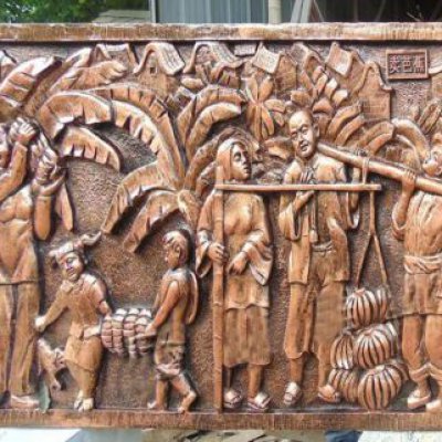 玻璃鋼仿銅浮雕以抗戰(zhàn)為主題,通過浮雕的形式紀(jì)念了那段血與火、生與死的歲月。浮雕的人物形象英勇,場景生動(dòng),銅色效果增添了歷史的厚重感,適合作為紀(jì)念館或教育場所的裝飾。