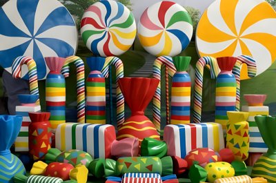 商超美陳糖果雕塑擺件以其繽紛色彩和獨(dú)特造型,成為商場(chǎng)中的甜美藝術(shù)品。這些擺件通常置于顯眼位置,吸引顧客注意,提升購物體驗(yàn)。節(jié)日或活動(dòng)中,它們?cè)鎏砉?jié)日氛圍,成為促銷手段,吸引顧客參與。